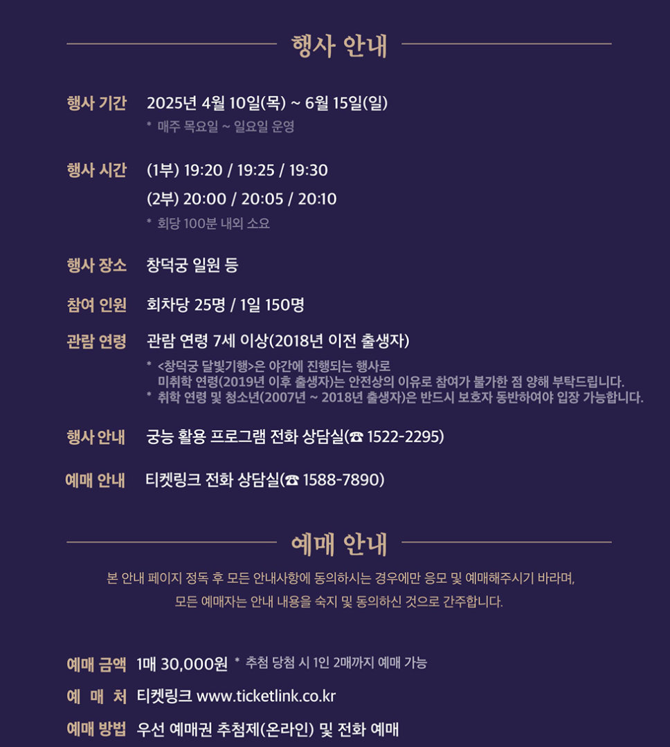 | 2025 경복궁 별빛야행(상반기): 왕궁의 밤, 찬란한 역사를 만나다 (0) | 2025.04.03 |