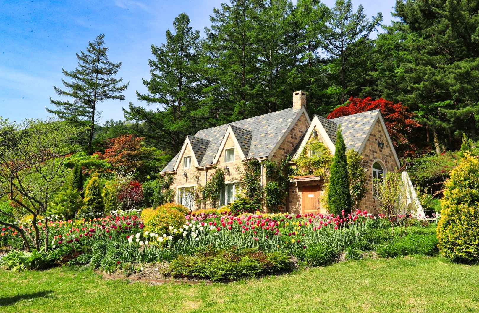 가평 하면 떠오르는 대표 관광지 중 하나가 바로 아침고요수목원입니다. 해발고도가 좀 있는 청정 산악 지대에 위치해 4월이 되어야 본격적으로 봄꽃이 피어나지만, 그만큼 만개했을 때 풍경은 동화 속 세상을 방불케 합니다.